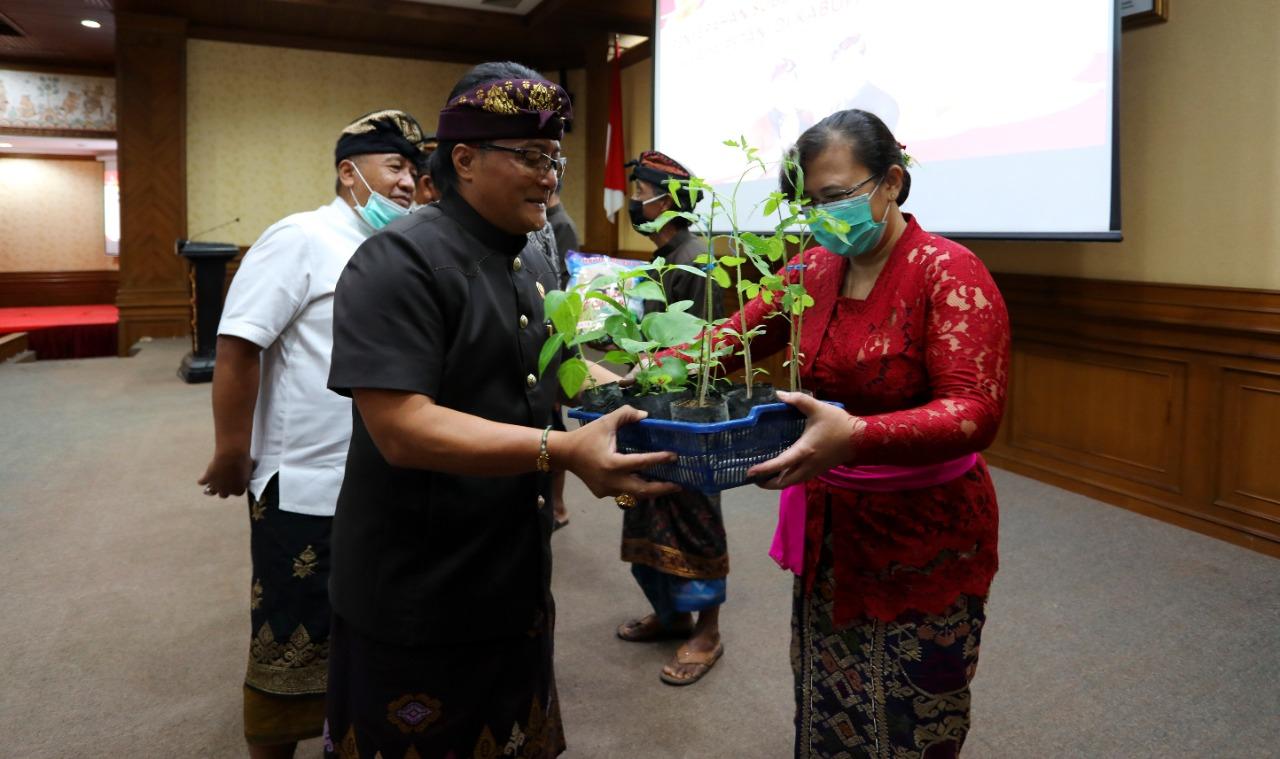 Apresiasi Petani Ikut Jaga Stabilitas Pangan di Tengah Pandemi Covid-19, Bupati Giri Prasta Serahkan Bantuan Benih Padi Inbrida Dan Bibit Sayur