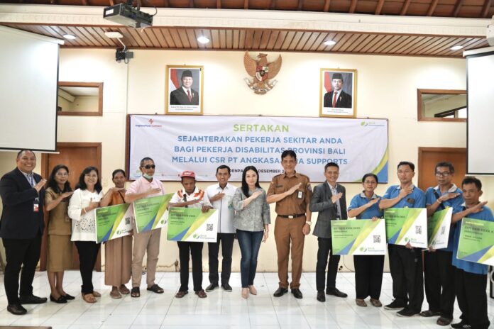 DENPASAR, Fajarbadung.com – PT Angkasa Pura Supports (APS) menyerahkan CSR perlindungan Jaminan Sosial bagi ratusan penyandang disabilitas yang aktif bekerja di Bali. Acara penyerahan jaminan ini dilakukan di Ruang Rapat Dinas Sosial, Pemberdayaan Perempuan dan Pelindungan Anak Provinsi Bali, Senin (8/12/2025)