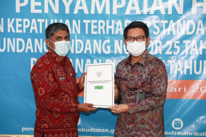Sementara itu Kepala Ombudsman RI Perwakilan Bali Umar Ibnu Alkhatab mengatakan tujuan dilakukannya penyerahan sertifikat ini adalah untuk meningkatkan kualitas pelayanan publik serta pencegahan maladministrasi melalui implementasi komponen standar pelayanan pada unit pelayanan publik. Pihaknya mengatakan sudah melakukan penilaian terhadap seluruh kabupaten/kota di Bali termasuk Provinsi Bali, hanya yang mendapat indikator hijau terdapat 3 Kabupaten saja yaitu Kabupaten Badung, Kabupaten Tabanan dan Kabupaten Klungkung yang lainnya masih di indikator kuning yang dimana belum optimal.
