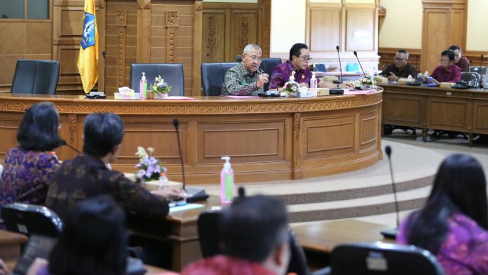 MANGUPURA, Fajarbadung.com – Rapat Kerja (Raker) Gabungan Komisi DPRD Kabupaten Badung dengan Organisasi Perangkat Daerah (OPD) terkait dipimpin langsung oleh Ketua DPRD Kabupaten Badung Putu Parwata didampingi Wakil Ketua II DPRD Kabupaten Badung Made Sunarta di Ruang Rapat Madya Gosana Kantor DPRD Kabupaten Badung, Selasa, (11/7).
