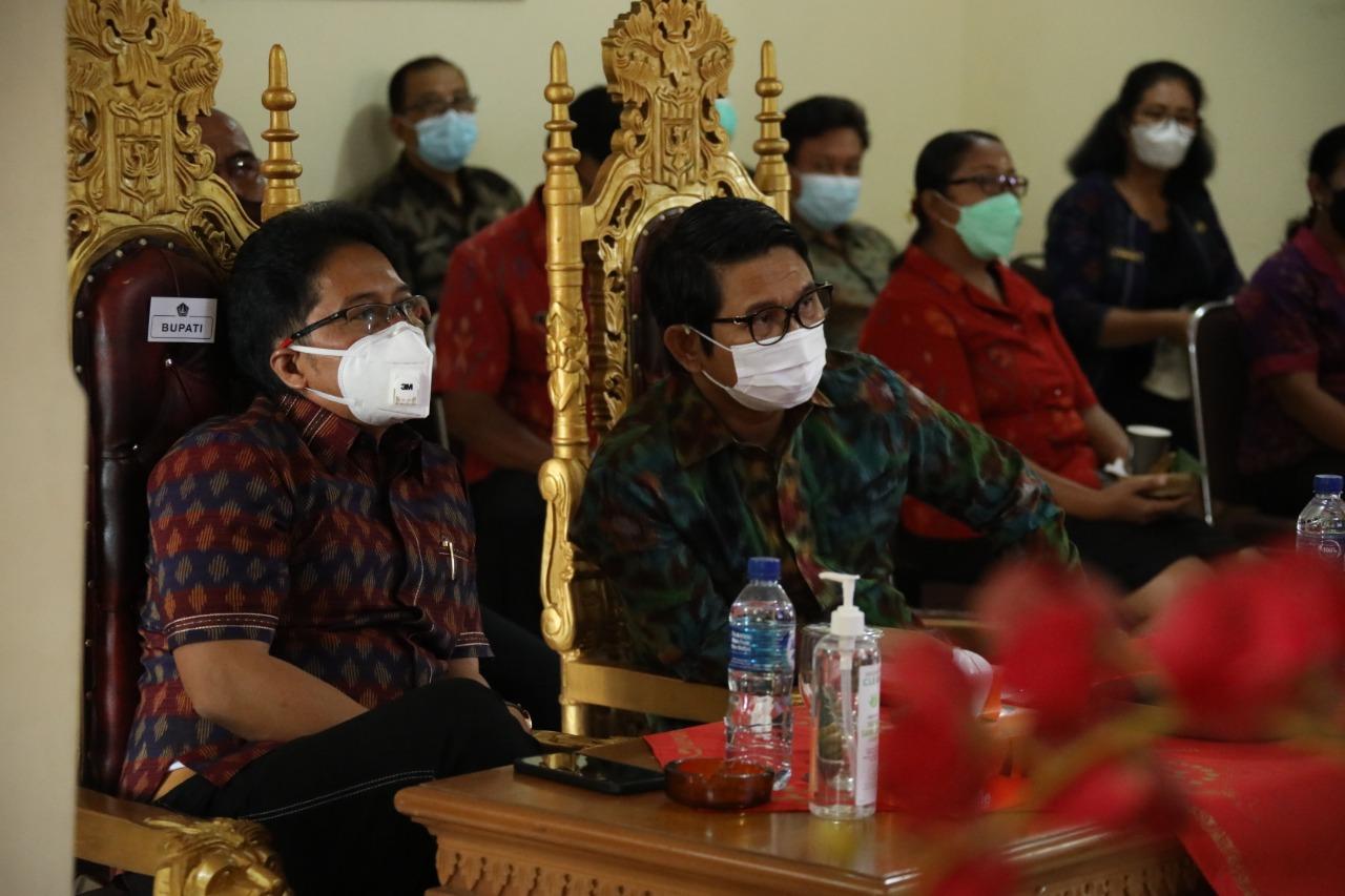 ABIANSEMAL, Fajarbadung.com – Bupati Badung I Nyoman Giri Prasta didampingi Sekda Badung I Wayan Adi Arnawa mengikuti acara Pencanangan Pelaksanaan Program Desa Kerti Bali Sejahtera (KBS) yang merupakan upaya inovatif Pemprov Bali dalam membangkitkan ‘Gerakan Semesta Berencana Membangun Bali dari Desa untuk mewujudkan Desa Trisakti Bung Karno’ melalui virtual zoom, bertempat di Kantor Desa Punggul, Kecamatan Abiansemal, Sabtu (16/10). Turut hadir mendampingi Bupati secara virtual, Camat Abiansemal beserta unsur Tripika, Kabag Prokompim I Made Suardita, Perwakilan BKPSDM, Perbekel Desa Punggul Kadek Sukarma dan undangan lainnya.