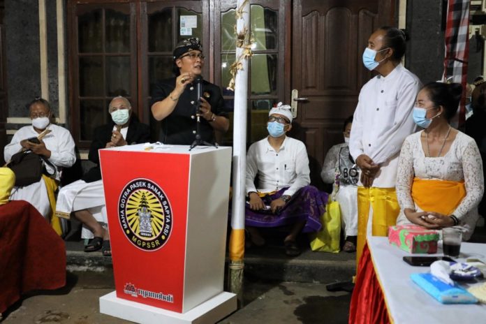 SEMARAPURA, Fajarbadung.com – Bupati Badung I Nyoman Giri Prasta yang juga selaku Ketua Maha Gotra Pasek Sanak Sapta Rsi (MGPSSR) Provinsi Bali menghadiri Upacara Rsi Yadnya Munggah Sulinggih terhadap Ida Bhawati Pasek I Wayan Gede beserta istri yang digelar di Desa Bakas, Kecamatan Banjarangkan, Kabupaten Klungkung, Selasa (8/6) malam. Turut hadir Bupati Klungkung I Nyoman Suwirta, Ketua PHDI Bali Prof. Dr. I Gusti Ngurah Sudiana, Ketua Majelis Madya Desa Adat Klungkung, Dewa Made Tirta, Ketua PHDI Klungkung l Putu Suarta dan para sulinggih.