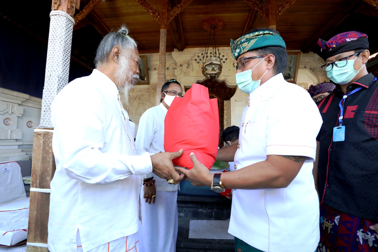 MANGUPURA, Fajarbadung.com – Perhatian Pemkab Badung melalui Dinas Kebudayaan terhadap Sulinggih sangatlah besar. Seperti pada masa pandemi Covid-19 ini, Badung merealisasikan penyerahan Punia (bantuan) kepada 246 Sulinggih se-Kabupaten Badung. Punia diserahkan secara simbolis oleh Bupati Badung I Nyoman Giri Prasta didampingi Wabup Suiasa dan Sekda Adi Arnawa kepada 11 Sulinggih di Griya Kediri Sangeh Abiansemal, Kamis (11/6).