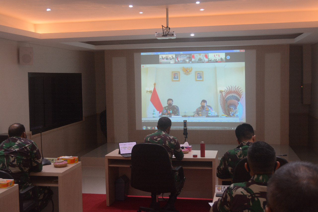 Pangdam IX/Udayana Mayjen TNI Maruli Simanjuntak, M.Sc., didampingi Asrendam IX/Udy, para Asisten Kasdam IX/Udy, Kabekangdam IX/Udy, Kakesdam IX/Udy, Kapaldam IX/Udy, Kazidam IX/Udy, Kahubdam IX/Udy dan LO AU Kodam IX/Udy mengikuti kegiatan Ratas melalui Vidcon tersebut di Ruang Yudha Puskodalopsdam IX/Udayana, Denpasar. (red/Pendam IX/Udy).