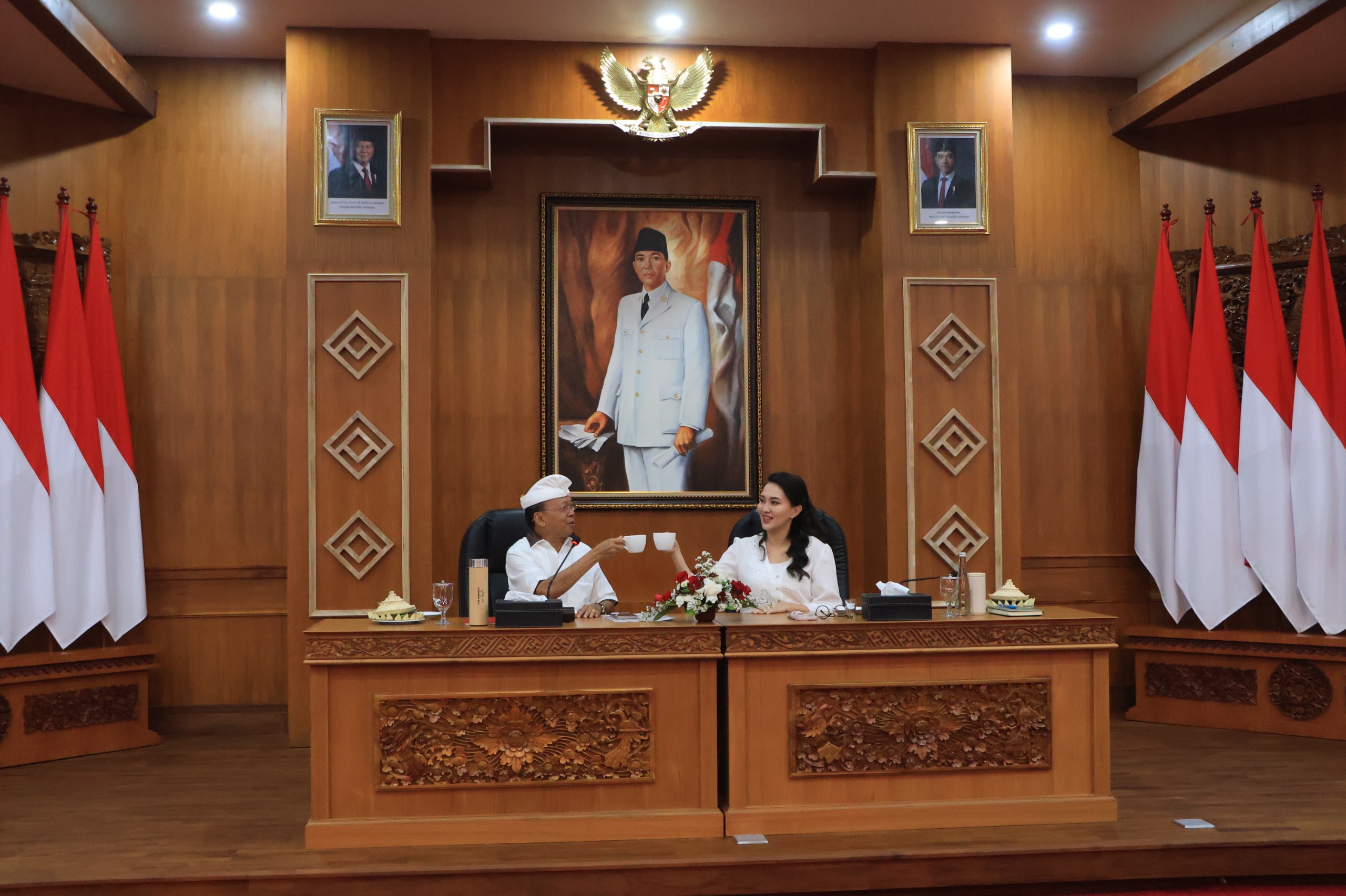 DENPASAR, Fajarbadung.com – Gubernur Bali, Wayan Koster bersama Sekda Provinsi Bali, Dewa Made Indra menerima kehadiran Gubernur Maluku Utara, Sherly Tjoanda beserta jajarannya pada, Sabtu (Saniscara Kliwon, Uye) 12 Juli 2025 di Kertha Sabha, Jayasabha, Denpasar.