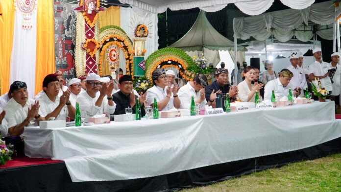 MANGUPURA, Fajarbadung.com – Wakil Gubernur Bali, I Nyoman Giri Prasta menghadiri Karya Pitra Yadnya dan Manusa Yadnya Kinembulan Desa Adat Sading Warsa Saka 1947/Masehi 2025 yang bertempat di Sading, Mengwi, Kamis (25/7). Kehadirannya disambut dengan Tarian Rejang Jagat Sading yang dibawakan oleh 150 ibu-ibu PKK Desa Adat Sading.