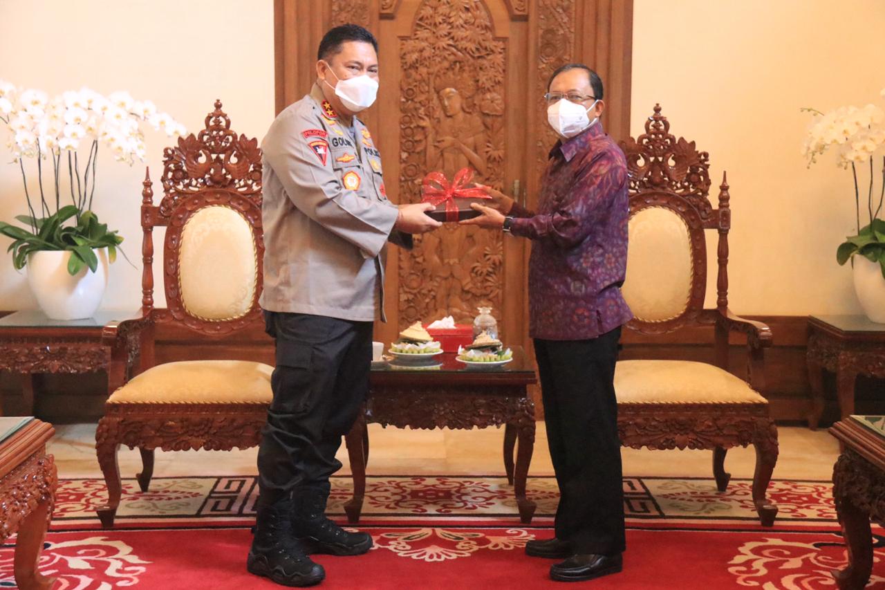 Irjen Pol Petrus Golose juga menyampaikan terima kasih atas kerjasama dan dukungan Gubernur Koster selama dirinya menjabat pimpinan Polda Bali. Ia menyampaikan permohonan maaf apabila selama melaksanakan tugas sebagai Kapolda Bali ada hal-hal yang kurang berkenan.