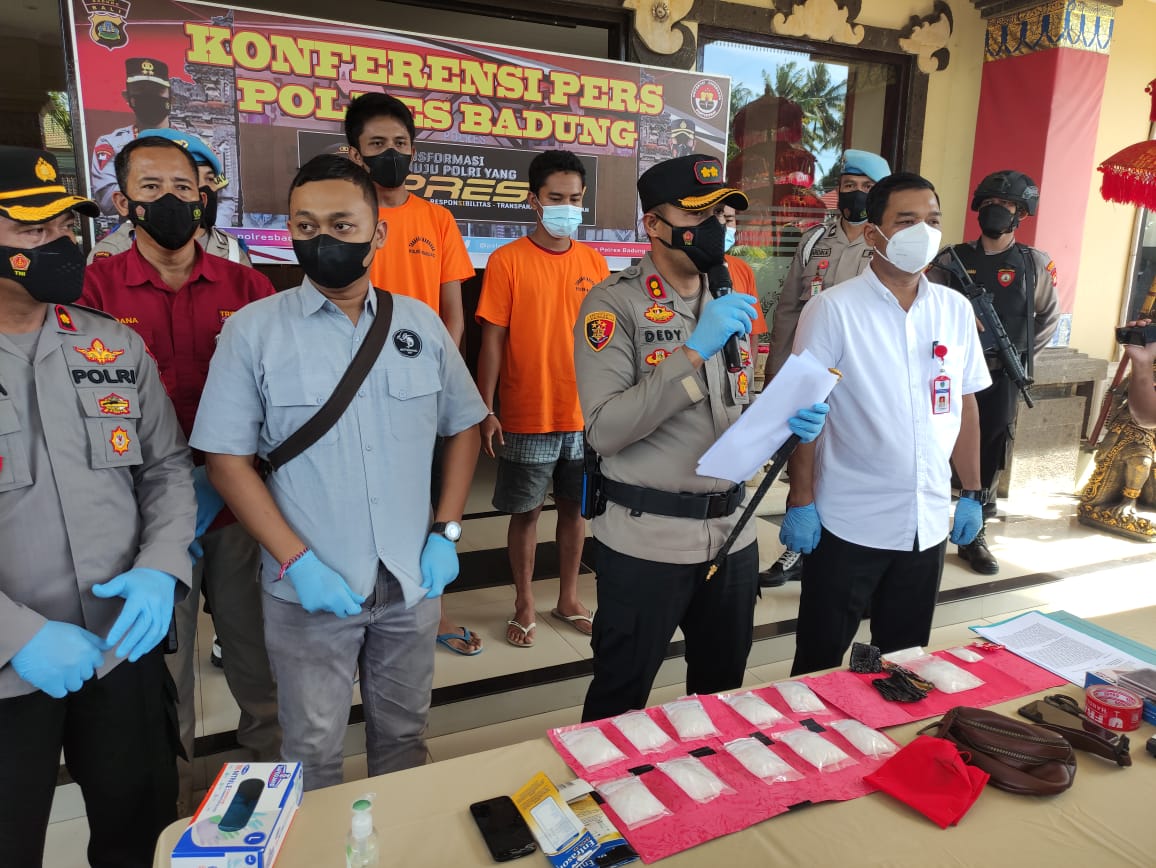 “Pelaku duduk di bangku kelas tiga SMA di salah satu sekolah di Tabanan,” kata Kasat Narkoba Polres Badung, AKP I Putu Budi Artama di Mapolres. Dijelaskan AKP Budi, bahwa pelaku ditangkap pada Jumat (14/1/2022) di pinggir jalan Raya Tegal Saat, gang Anggrek Banjar Tegal Saat, desa Kapal, Mengwi, Badung.