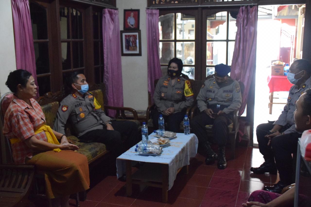 PADANG SAMBIAN , Fajarbadung.com – Kepala Kepolisian Resor Badung AKBP Roby Septiadi, SIK kunjungi keluarga Iptu (purn) I Wayan Konci, SH (Alm) dalam rangka silaturahmi dan berbagi tali kasih berupa paket sembako kepada keluarga almarhum di tengah pandemi virus corona (Covid-19).