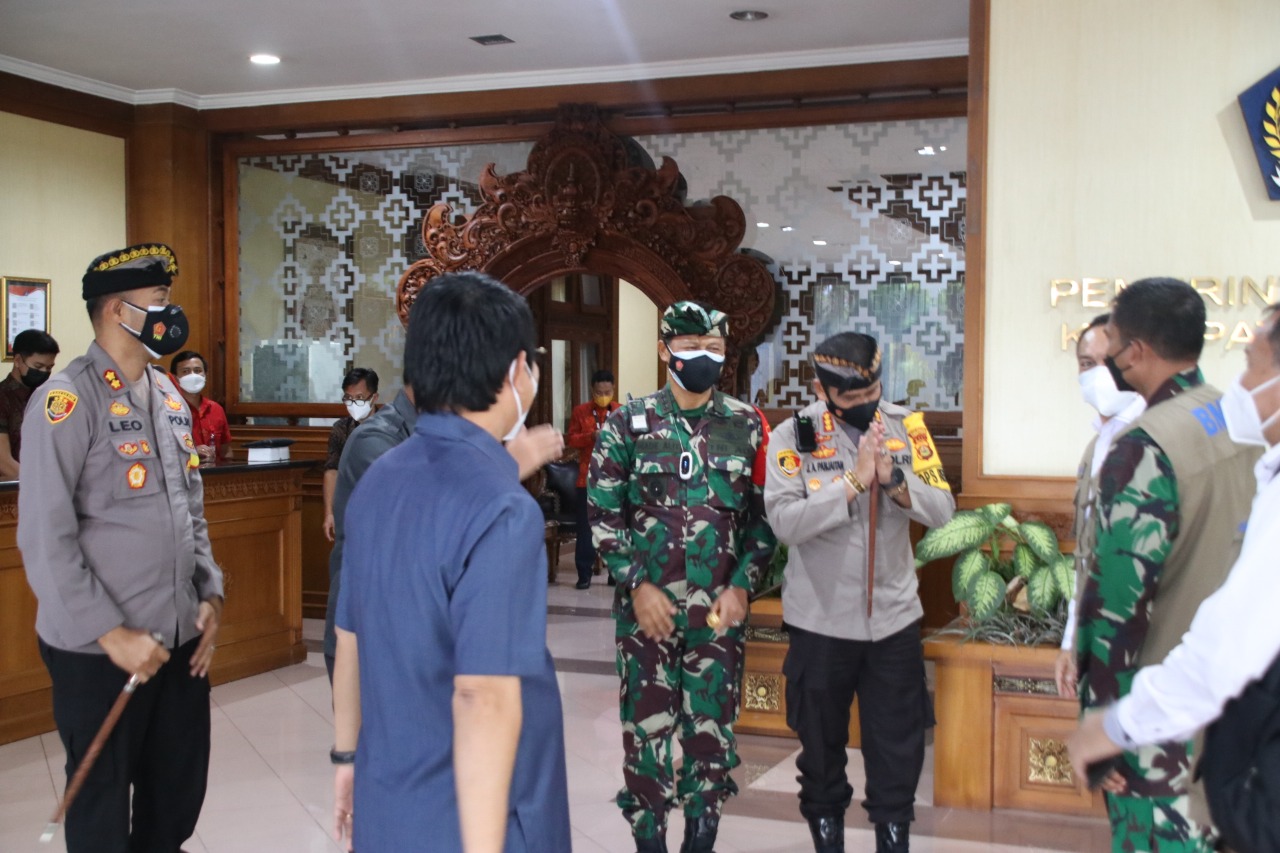 MANGUPURA, Fajarbadung.com – Kapolres Badung AKBP Leo Dedy Defretes, SIK, SH, MH sambut kunjungan Tim pakar satgas covid-19 Pusat di ruang Pertemuan Nayaka Gosana 1, pusat pemerintahan Kabupaten Badung, Bali Selasa, (10/8) siang pukul 13.45 wita.