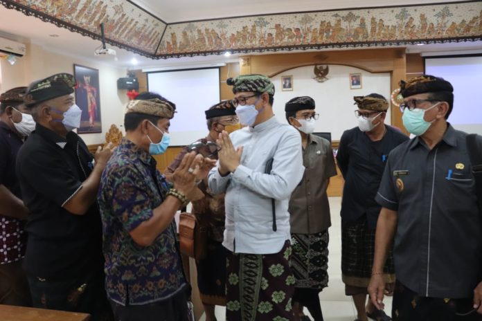Suiasa saat bertatap muka terkait vaksinasi dengan para Lurah, Bendesa Adat, Kepala Lingkungan se-Kecamatan Kuta dan UPT Disdikpora Kecamatan Kuta, di ruang pertemuan Kantor Camat Kuta, Kamis (1/4). Pertemuan tersebut dihadiri anggota DPRD Badung dapil Kuta I Gst. Anom Gumanti, Kadis Kesehatan dr. I Nyoman Gunarta dan Camat Kuta I Nyoman Rudiarta.