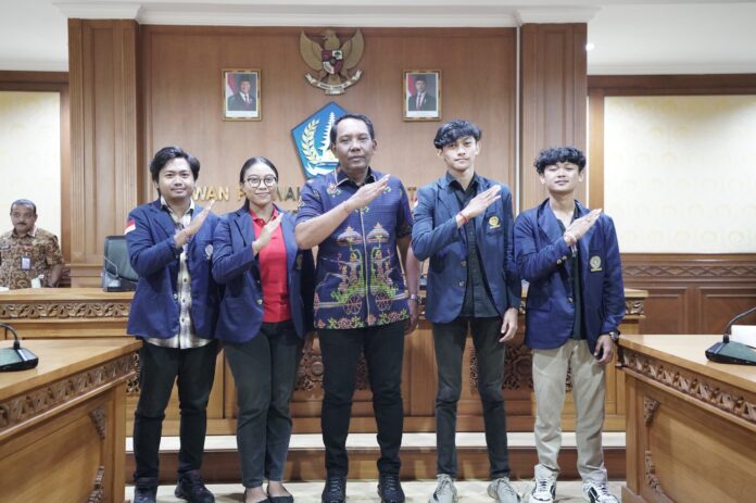 MANGUPURA, Fajarbadung.com – Ketua Dewan Perwakilan Rakyat Daerah (DPRD) Kabupaten Badung I Gusti Anom Gumanti menerima audensi dari Lembaga Mahasiswa Fakultas Hukum Universitas Udayana (LMFH Unud) di Ruang Rapat Pimpinan, Kantor Sekretariat DPRD Kabupaten Badung, Selasa, (25/2/2025).