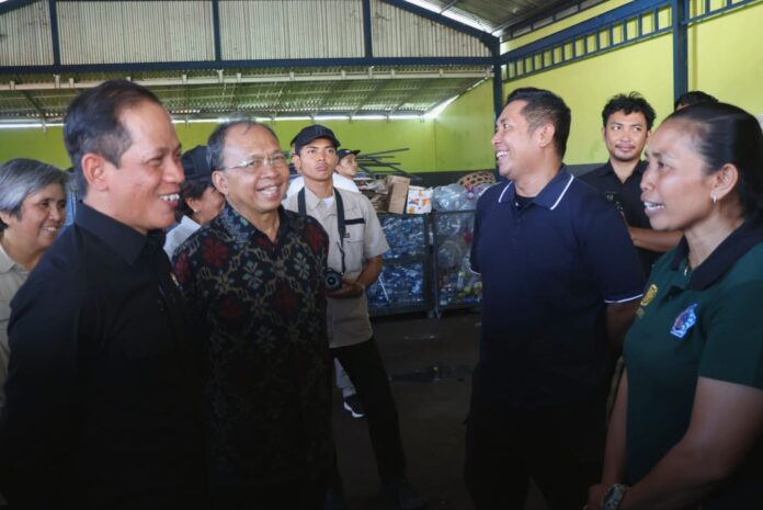 BADUNG, The East Indonesia – Gubernur Bali Wayan Koster mendampingi Menteri Lingkungan Hidup RI yang juga selaku Kepala Badan Pengendalian Lingkungan Hidup (BPLH) Hanif Faisol Nurofiq meninjau dua Tempat Pengolahan Sampah Reduce Reuse Recycle (TPS3R) di wilayah Badung, Kamis (5/3). Dua TPS3R yang ditinjau yaitu TPS3R Abirupa Pertiwi Desa Bongkasa Pertiwi dan Pudak Mesari Desa Darmasaba, Kecamatan Abiansemal.