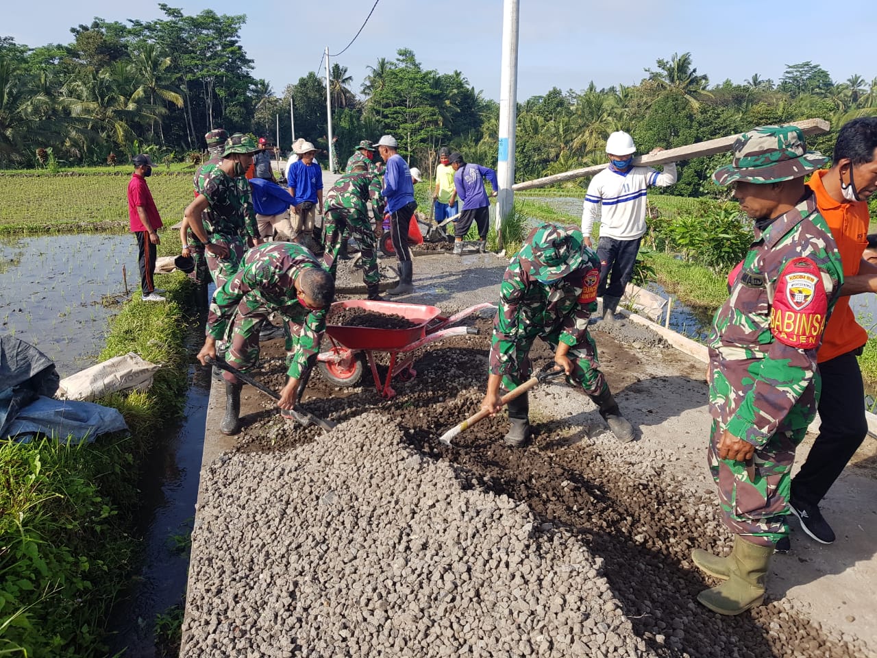 Kegiatan dilanjutkan dengan gotong royong karya bakti pembersihan jalan yang akan dibetonisasi dan pelaksanaan pengecoran jalan oleh anggota Kodim 1619/Tabanan dengan masyarakat Banjar Cepik, Desa Tajen, Kecamatan Penebel, Tabanan.