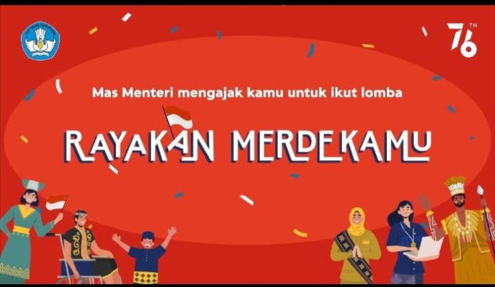 JAKARTA, Fajarbadung.com – Menteri Pendidikan, Kebudayaan, Riset, dan Teknologi (Mendikbudristek) Nadiem Anwar Makarim hari ini menyampaikan ajakan untuk berpartisipasi dalam lomba ‘Rayakan Merdekamu’ yang diselenggarakan Kementerian Pendidikan, Kebudayaan, Riset, dan Teknologi (Kemendikbudristek) dalam rangka menyambut hari ulang tahun (HUT) Republik Indonesia yang ke-76.