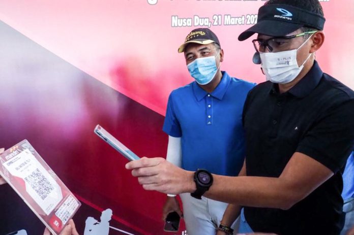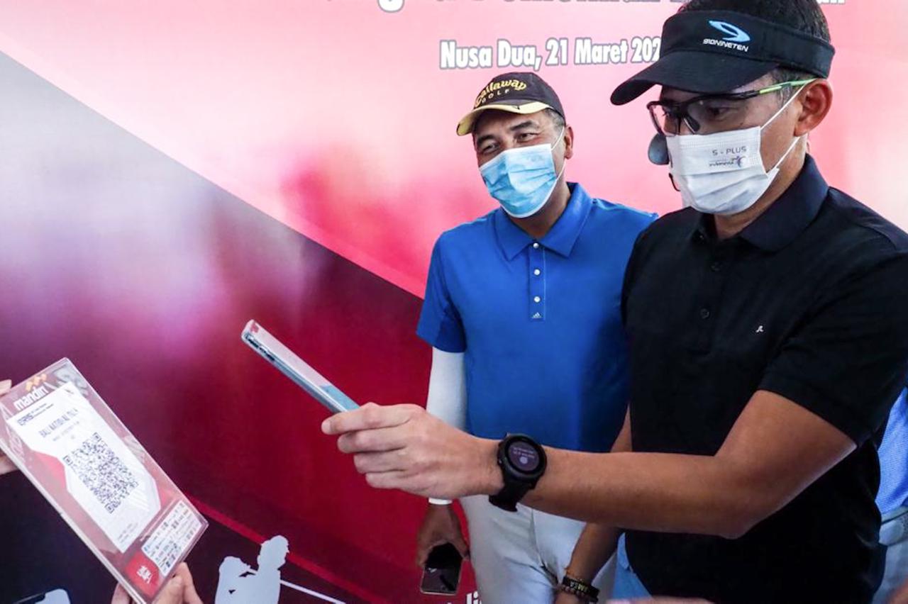 NUSA DUA, FAJARBADUNG.COM  – Menteri Pariwisata dan Ekonomi Kreatif/Kepala Badan Pariwisata dan Ekonomi Kreatif, Sandiaga Salahuddin Uno, meresmikan pemanfaatan metode transaksi digital QRIS (Quick Response Code Indonesian Standard) untuk bidang wisata olahraga golf.