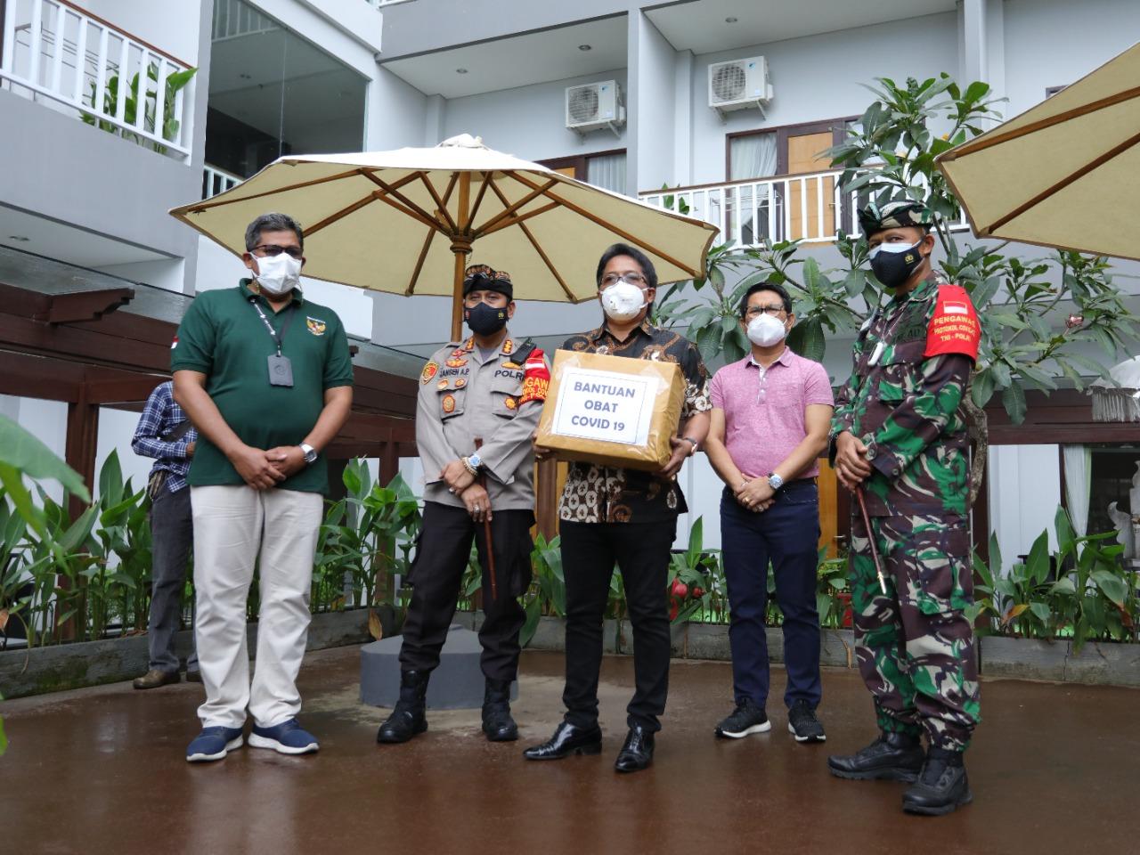 Pada kesempatan tersebut Dandim Badung menyerahkan bantuan obat Covid-19 kepada Bupati Giri Prasta.