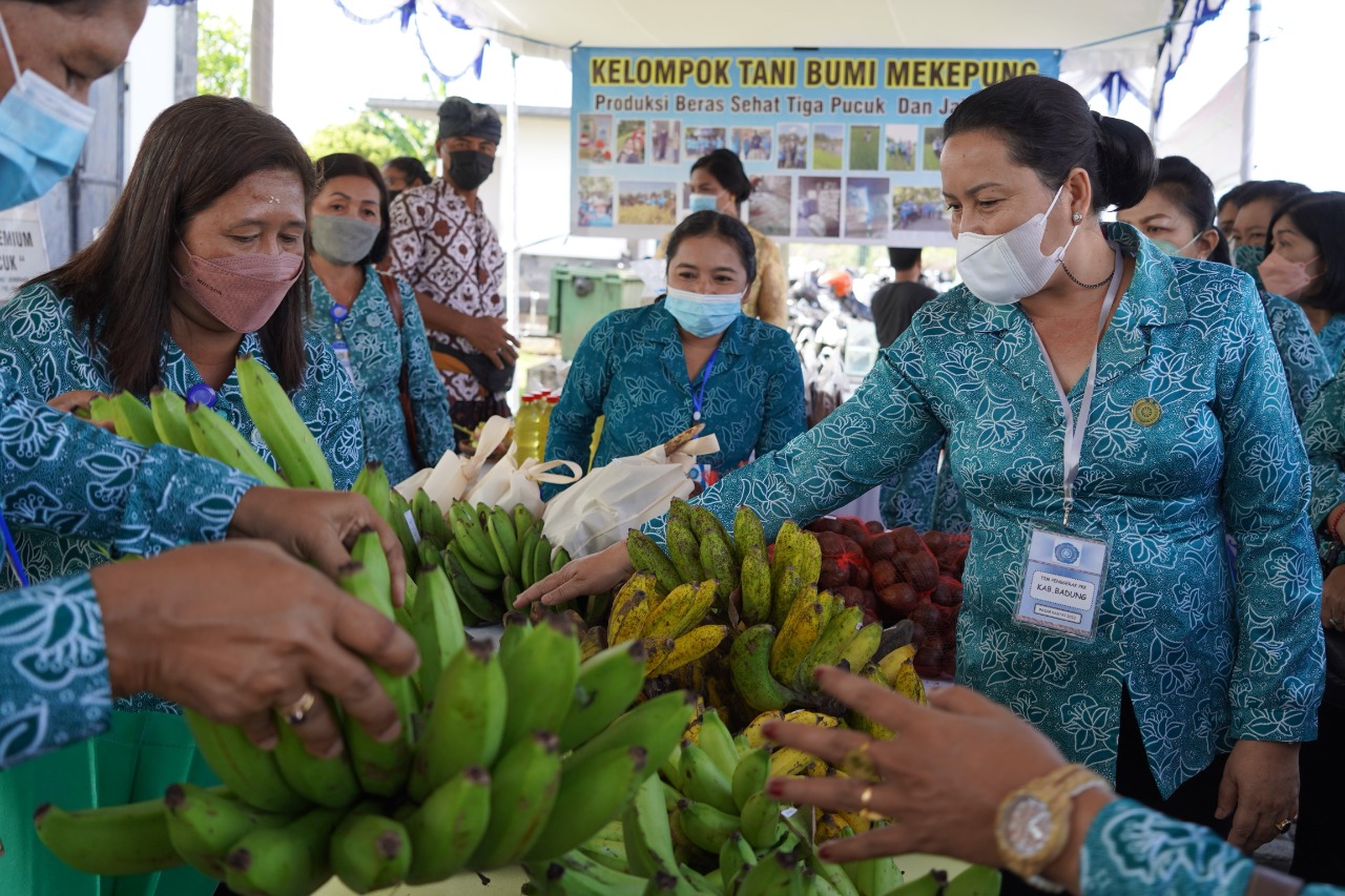 Di tengah tekanan ekonomi akibat dampak pandemi Covid-19 berbagai sektor mengalami keterpurukan, termasuk juga ekonomi masyarakat. Untuk itu, Ketua Tim Penggerak PKK Kabupaten Badung Ny. Seniasih Giri Prasta mendukung penuh dan memberikan apresiasi terhadap pelaksanaan Pasar Rakyat yang digelar TP. PKK Provinsi Bali secara bergiliran di kabupaten dan kota se-Bali.