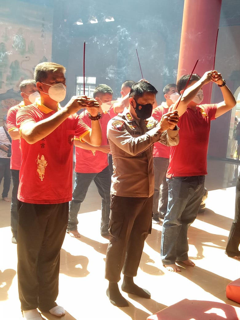Pada kesempatan tersebut Kapolda Bali Irjen Pol Putu Jayan Danu Putra S.H., M.Si., juga menyempatkan diri untuk ikut melaksanakan doa bersama dengan panitia pelaksanaan Imlek Vihara Satya Dharma.