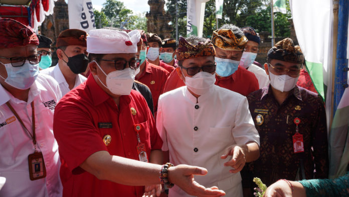 TABANAN, Fajarbadung.com – Kabupaten Tabanan Bali mulai memberlakukan pasar murah dan E-retribusi. Pemberlakukan tersebut dalam rangka mendorong pemulihan ekonomi menuju Bali bangkit. Pemkab Tabanan melalu Bupati Tabanan I Komang Gede Sanjaya bersama Bank Indonesia Provinsi Bali serta Bank BPD Bali melakukan kegiatan “pasar murah dan peresmian E-Retribusi Pasar” sejak Kamis (22/4/2021) di Gedung Kesenian Ketut Mario Tabanan. Bank Indonesia bekerjasama dengan Pemerintah Kabupaten Tabanan, BPD Bali dan Pengelola Pasar, mempersiapkan implementasi digital, yaitu Pasar Murah yang diikuti oleh 44 UMKM yang sudah menggunakan QRIS dan E-Retribusi berbasis QRIS di 4 pasar di Kabupaten Tabanan yaitu meliputi Pasar Kediri, Pasar Candikuning, Pasar Sayur Baturiti, dan Pasar Pupuan.