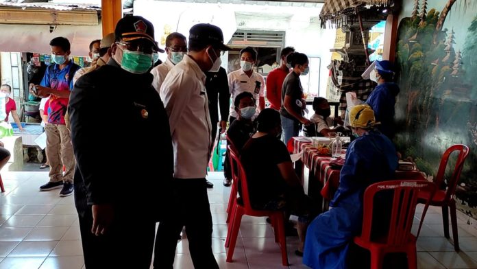 SINGARAJA, Fajarbadung.com – Bupati Buleleng, Putu Agus Suradnyana memantau jalannya vaksinasi di wilayah Kecamatan Buleleng. Pada kesempatan tersebut, dirinya memastikan tidak ada warga yang tercecer. Khususnya pada skala prioritas yakni dengan umur 40 tahun keatas.