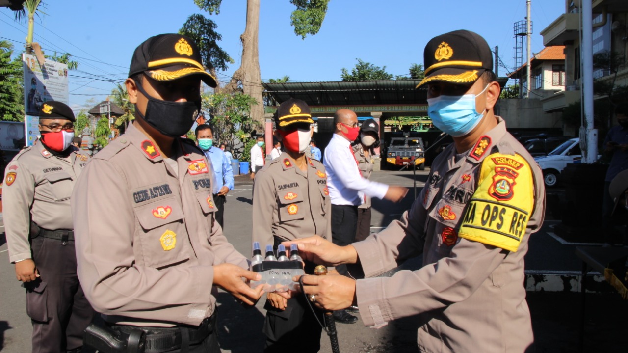 MENGWI, Fajarbadung,com – Dalam upaya menjaga kesehatan petugas, Kapolres Badung AKBP Roby Septiadi, SIK langsung serahkan 766 botol kecil hand sanitizer kepada personil untuk kelengkapan perorangan dalam melaksanakan tugas.