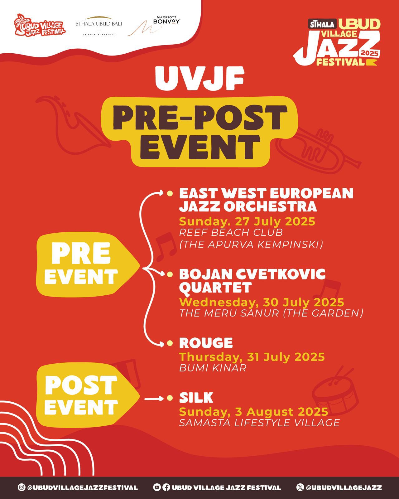Menurut Yuri Mahatma, co-founder UVJF, keberadaan pre-event dan post-event adalah cerminan filosofi festival ini sejak awal berdiri. “Kami ingin membangun kesadaran bahwa jazz bukan sekadar konser dua hari. Jazz adalah gelombang — dan gelombang itu harus terasa sejak awal dan bergema sesudahnya,” ungkapnya. “Kami merancang keseluruhan rangkaian ini agar penonton merasakan denyut jazz sebagai pengalaman yang utuh.”