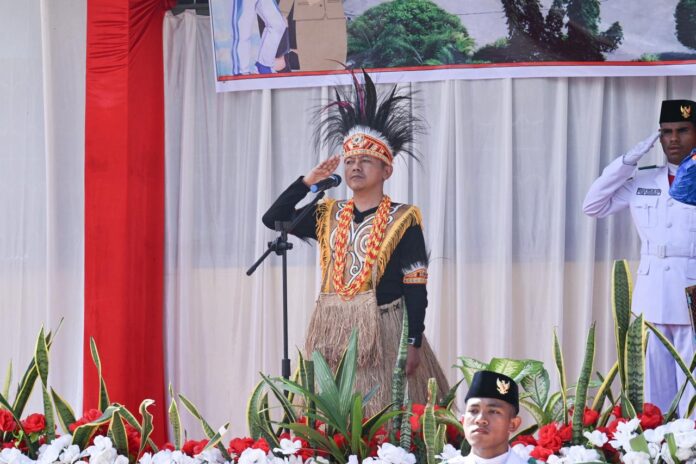 Kami berharap, kunjungan ini dapat menggerakkan kolaborasi seluruh pemangku kepentingan di daerah karena komitmen kita bersama sangat menentukan suksesnya kebijakan,” ucap Fajar dalam balutan busana adat Papua, ketika menjadi pembina upacara.