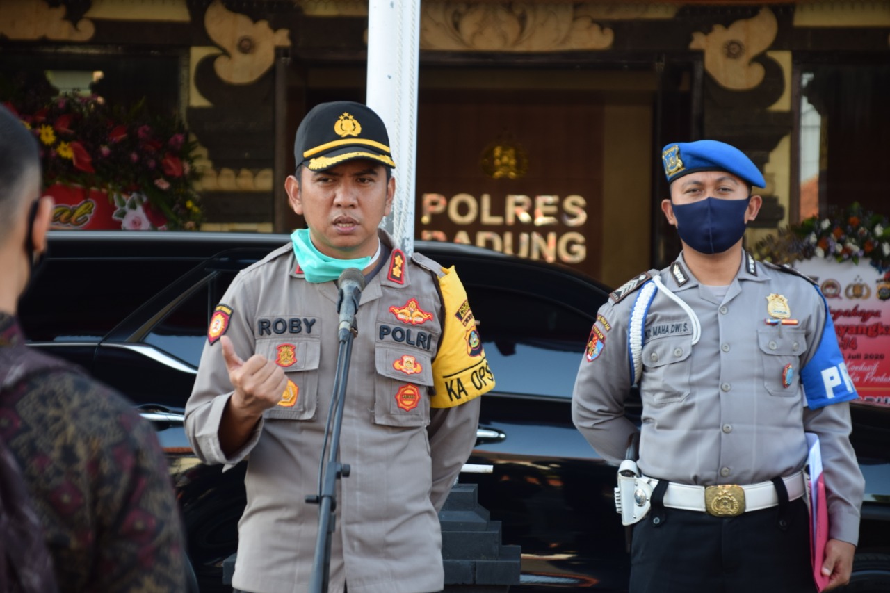 MENGWI, Fajarbaudng.com – Kepala Kepolisian Resor Badung AKBP Roby Septiadi, SIK setelah pemeriksaan administrasi oleh Panitia Pembantu Penerimaan (Panbanrim) calon anggota Polri di Polres Badung, langsung memberikan pengarahan terhadap calon anggota Polri baik dari Taruna maupun Tamtama dilapangan Apel Mapolres. Jumat, (03/07), sore.