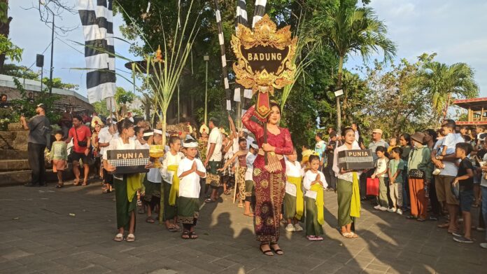 MANGUPURA, FAJARBADUNG.COM – Sanggar Seni Tindak Alit dari Banjar Sengguan, Kelurahan Sempidi, Kecamatan Mengwi, unjuk kebolehan dalam gelaran Parade Ngelawang Pesta Kesenian Bali (PKB) ke-47 pada Sabtu (12/7).