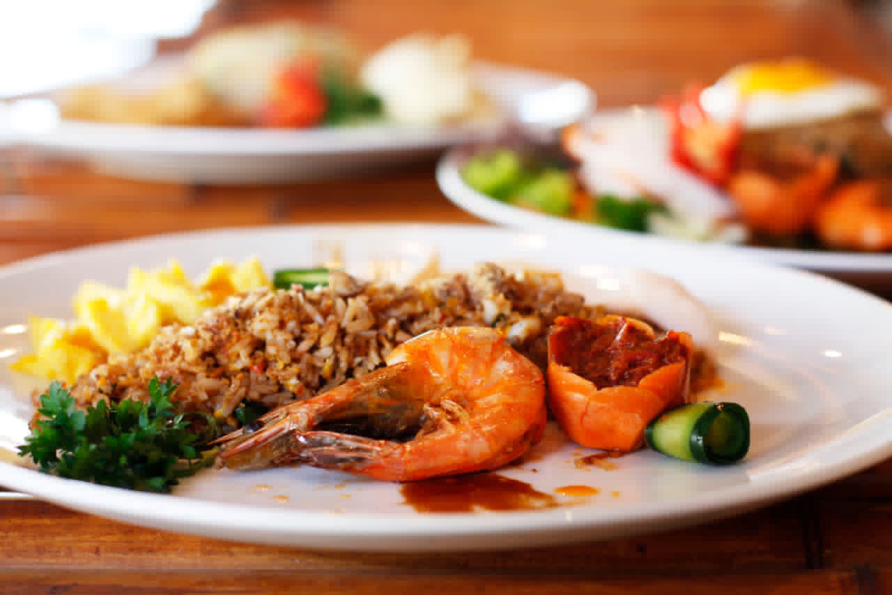 Nasi Goreng Seafood yang kami sediakan sangatlah khas dengan seafoodnya yaitu dilengkapi dengan telur dan juga udang sebagai pelengkapnya serta kerupuk udang yang renyah. Sedangkan untuk Nasi Goreng Vegetarian kali ini dilengkapi dengan tahu, tempe dan juga telur dimana kerupuk yang digunakan yaitu kerupuk melinjo.