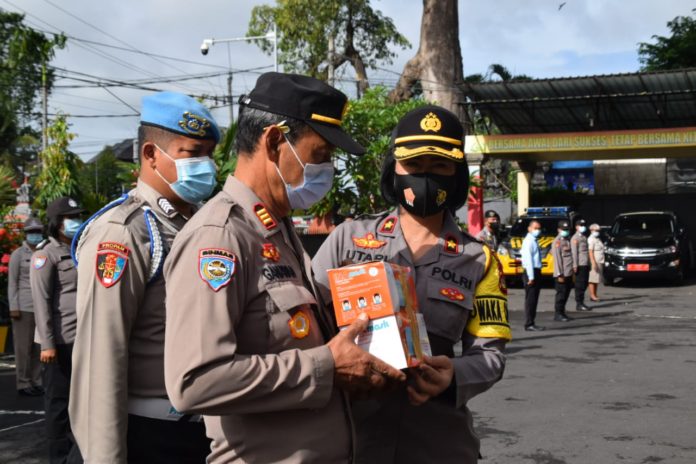 Wakapolres Badung Bagikan Ribuan Masker ke Personil