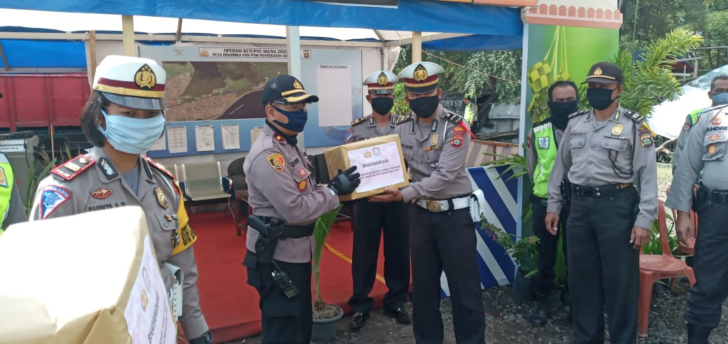 Kemudian Wakapolres Jembrana melakukan pengecekan di Pospam Sekat Terminal Negara sekaligus penyerahan bingkisan dari Ketua Cabang Bhayangkari yg diterima oleh Kapospam IPTU I Wayan Joniarsa, S.H dan personil yg dinas.